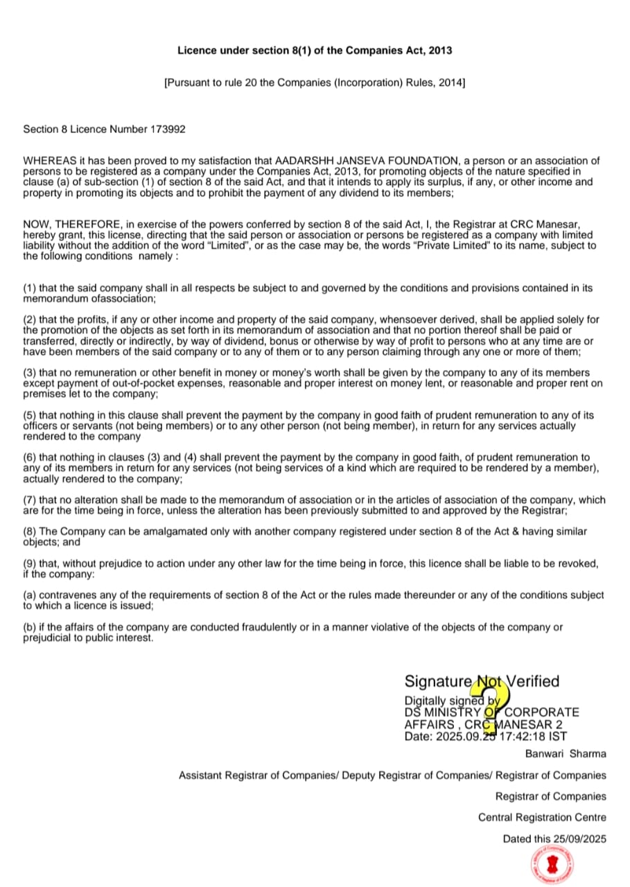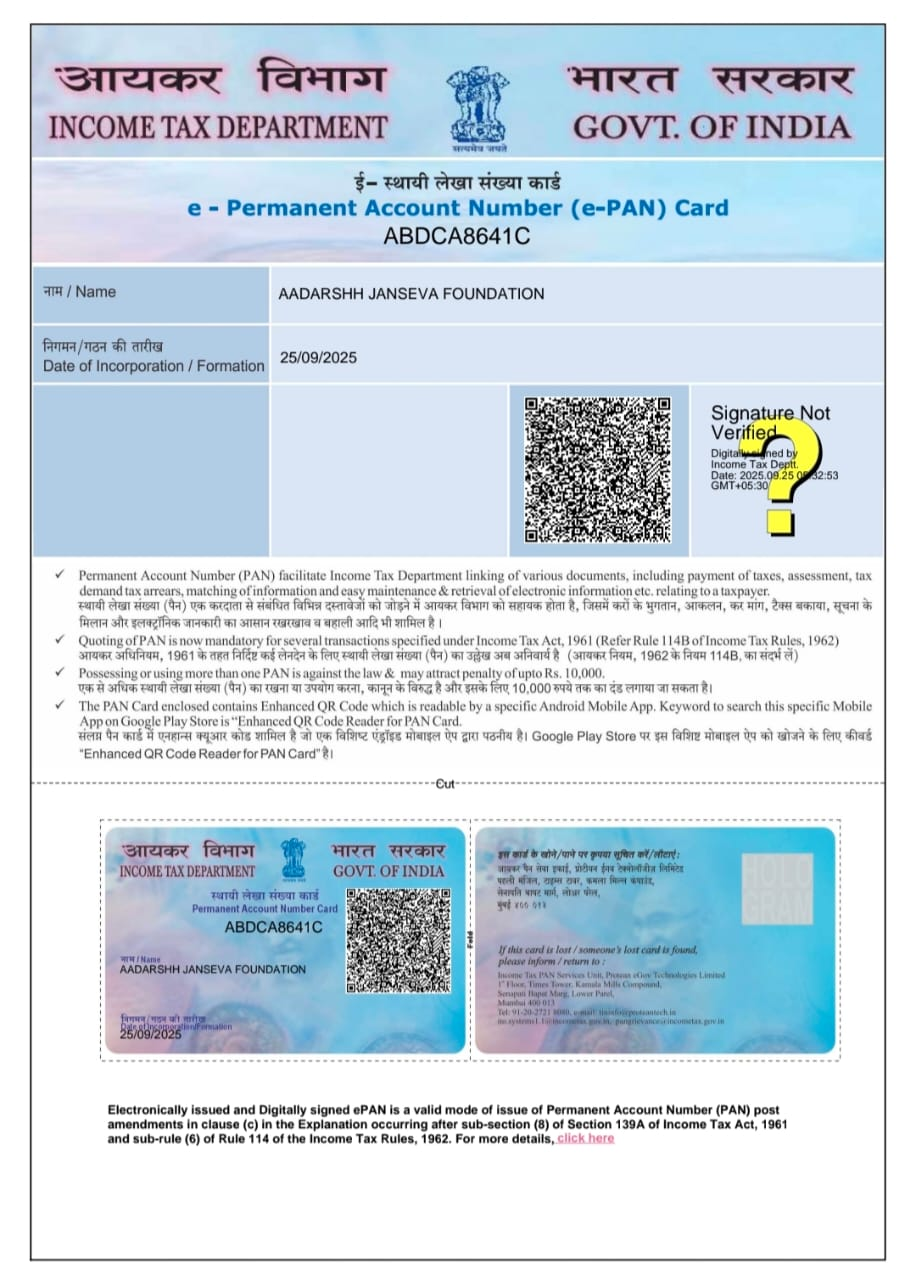© All Copyright 2025 by AADARSHH JANSEVA FOUNDATION
